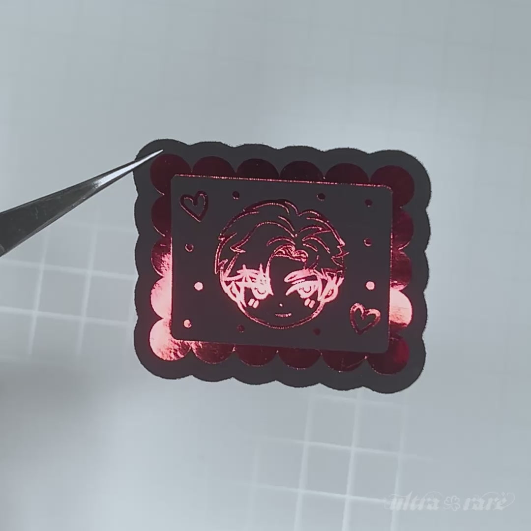 Handmade vinyl sticker with a matte finish and shiny red foil details. Not water-resistant, UV-resistant or dishwasher safe.